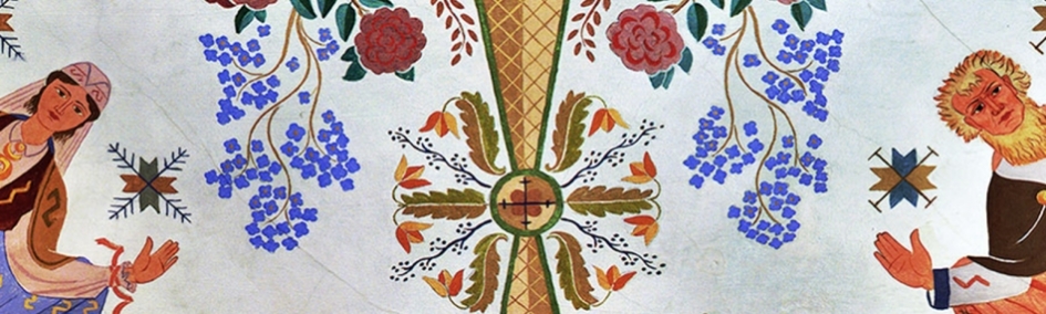 1) Rīgas pils Sūtņu akreditācijas zāle. Mākslinieks Ansis Cīrulis (1923–1929) / Foto: Leons Balodis / Avots: Dekoratīvās mākslas un dizaina muzeja krājums, 2) Rīgas pils Sūtņu akreditācijas zāles griestu fragments ar redzamiem krāsas zudumiem pēc 2013. gada 20. jūnija ugunsgrēka Rīgas pilī / Foto: Artūrs Lapiņš, 3) Latvju sieviešu nacionālās līgas mākslas aušanas skolā pagatavotais 80 km2 lielais persiešu tehnikas paklājs valsts prezidenta reprezentāciju telpām pēc mākslinieka Anša Cīruļa zīmējuma / Avots: Latvju sieviešu nacionālās līgas desmit gadu darbības pārskats 1922.–1932. (23. lpp.). (1932). [Rīga]: Latvju sieviešu nacionālā līga, 4) Sūtņu akreditācijas zāles mēbeles. Galdniekmeistari Kārlis Zunde, Roberts Bekers, Kārlis Pagasts, krēslu mēbeļdrānu gobelēna tehnikā audušas Latvju sieviešu nacionālās līgas audējas. Kļavas koks, griezums, Karēlijas bērza, sarkankoka, riekstkoka, magoņkoka un palisandra intarsija (1926–1929) / Avots: Rīgas vēstures un kuģniecības muzejs