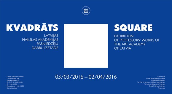 No 2016. gada 3. marta līdz 2. aprīlim Latvijas Mākslas akadēmijas (LMA) 1. stāva izstāžu zālē apskatāma LMA pasniedzēju piektā kopizstāde “KVADRĀTS”. Tā sniedz ieskatu visu nozaru pedagogu radošajā darbībā.