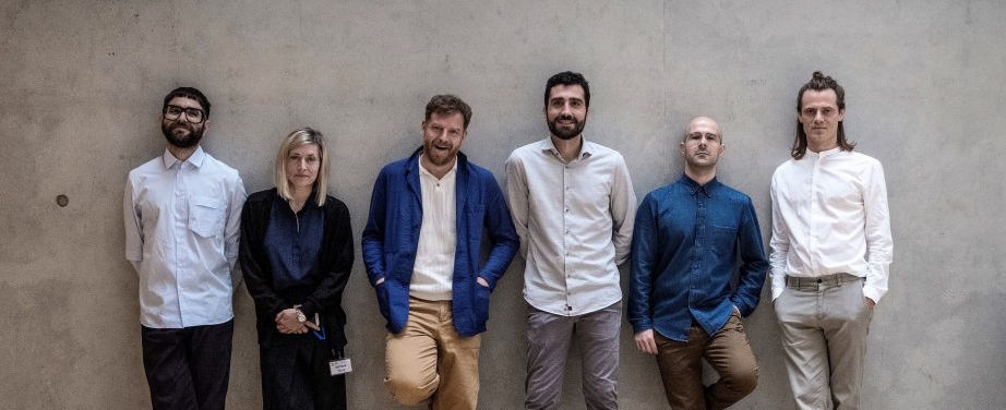 Foto: “ADP 2018” laureāti – Francisco Gallardo (FRAUD), Audrey Samson (FRAUD), Antonis Theodoridis, Bill Balaskas un Grzegorz Stefański ar mentoru Darren Almond.