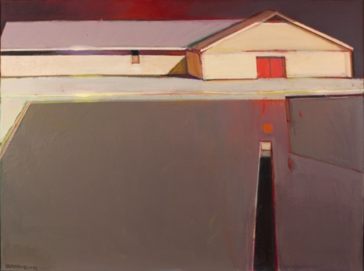 Attēls: Raimonds Staprāns. Šķūnis ar sarkanām durvīm. 2012. Audekls, eļļa. Autora īpašums