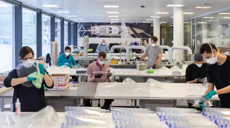 Foster + Partners sejas aizsarga izklājums, kas pieejams brīvai lejuplādei un lietošanai. Vienas lāzergriešanas iekārtas jauda ir 217 masku vienības stundā