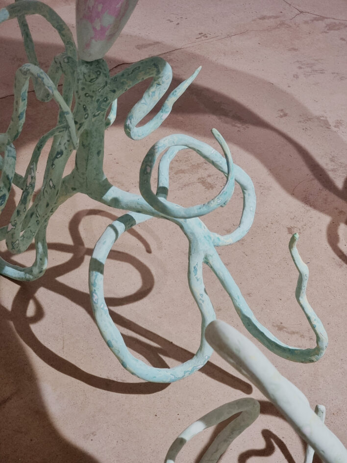 Egles tēlnieciskā prakse šeit atklājas kā ekofeministisks, garīgs ceļš, kur forma nav smaguma, bet maiguma nesēja. Viņas darbi apšauba ierasto priekšstatu par skulptūru robustumu – tie ir mīksti savā klātbūtnē, pat ja materiāli to noliedz. Arhaiskas formas, kolektīvās bezapziņas atbalsis un pēc procesa fiksētas dzejiskas impresijas rada sajūtu, ka šie objekti ir nevis izgatavoti, bet “izauguši”.