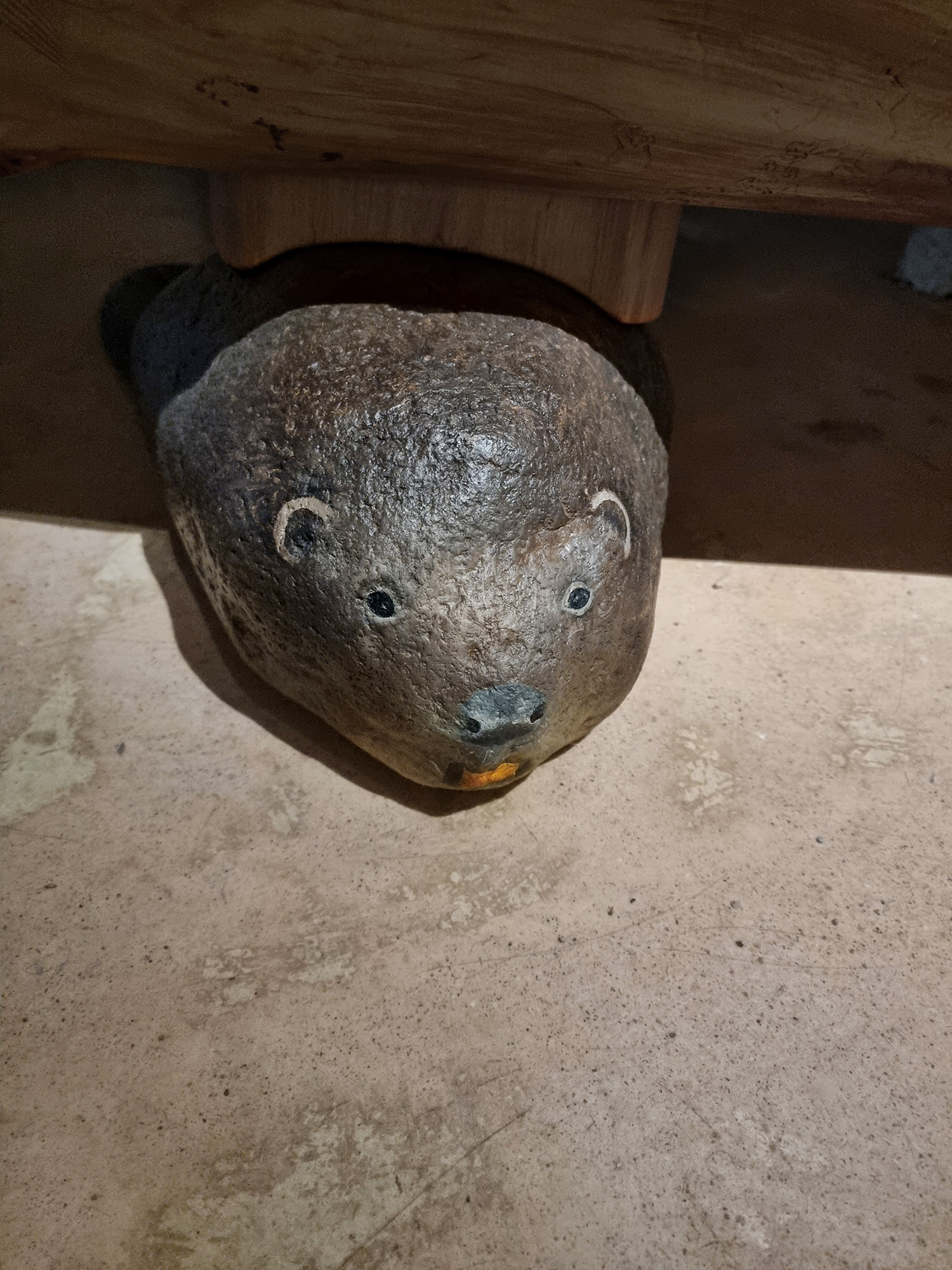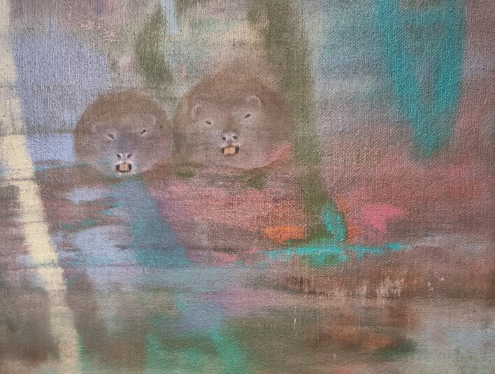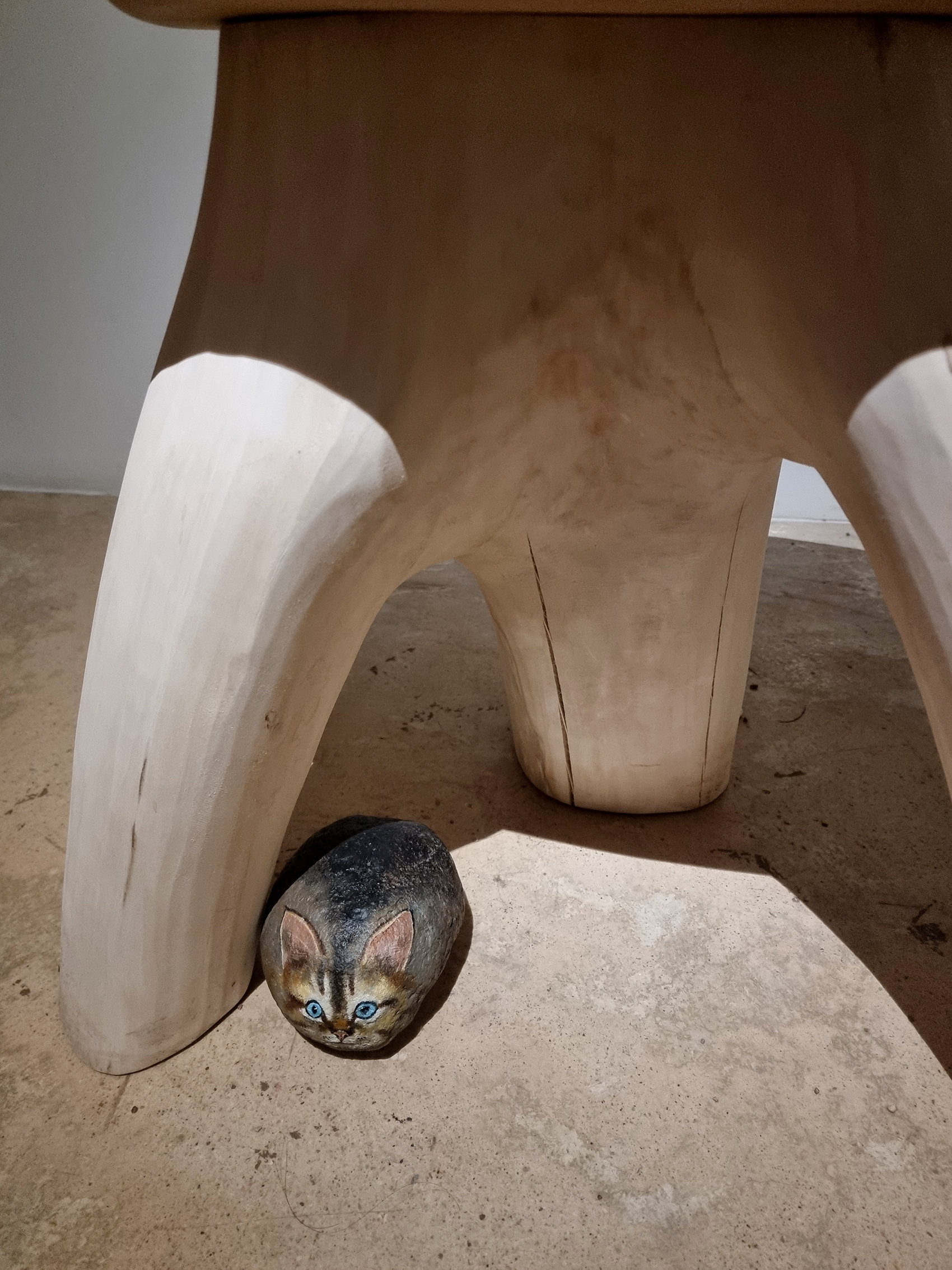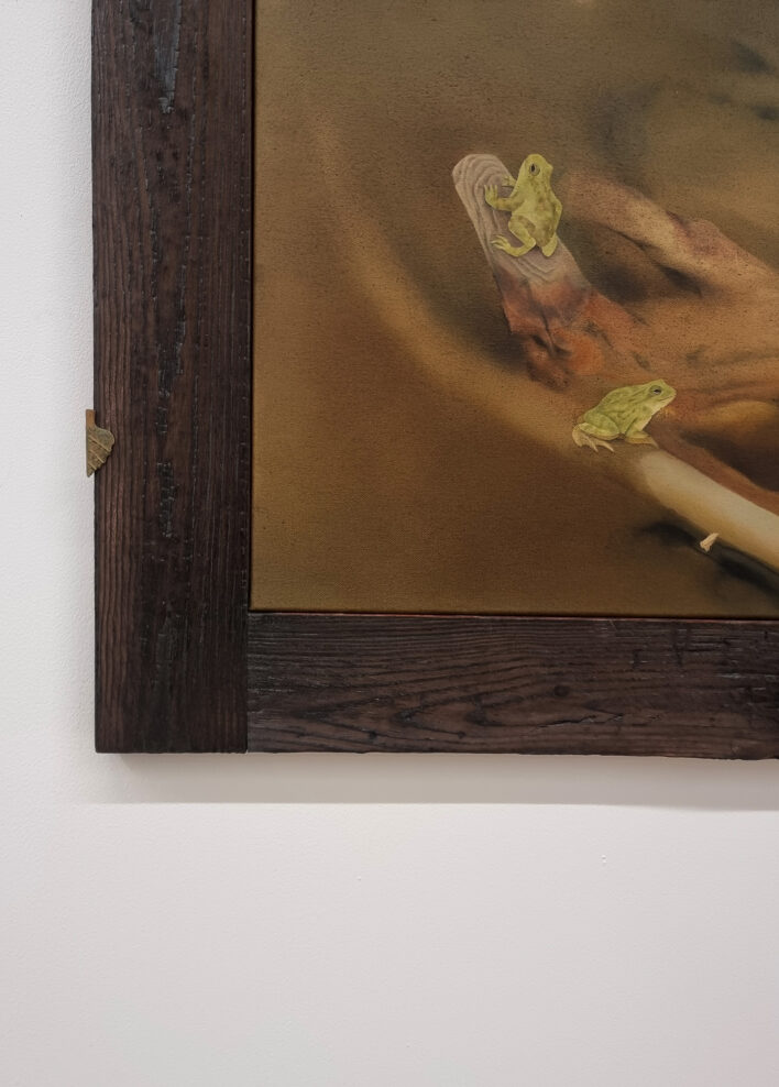 Ceļojums telpā turpinās, aizvien atklājot ko jaunu, kā virkne mazu pārsteigumu, kas katrs mazliet kairina skatītāja ierastos priekšstatus. Acij paveras kaut kas tik ļoti pazīstams bet arī ikdienā atstāts novārtā. Kā piemēram zaļo varžu gleznojums, kas nevainīgi stāv pie sienas, it kā nepasakot neko. Domas turpina lidot, atmiņas par bērnībā pieredzēto dabas apbrīnu ataust man prātā. Nevar nepieminēt apgleznoto akmeņu mākslu, kas asociējas ar mazdārziņu rotājumiem, bet organiski iepinas izstādes koncepcijā. Kaķis, kas nobijies vēro tevi no soliņa apakšas, izrādās akmens olis, kas smīn veiksmīgi apmānijis tevi gluži kā reālistisks putnu biedēklis lidojošos zemes iemītniekus. “Atrastie dārgumi” organiski ieaužas izstādes kopējā loģikā un jau atkal kāds cits dzīvnieka tēla atveidojums ir ne mazāk veiksmīgs dzīvās radības māns, kas atgādina par to, cik viegli ir sajaukt dzīvo ar nedzīvo, ja skatāmies pavirši.