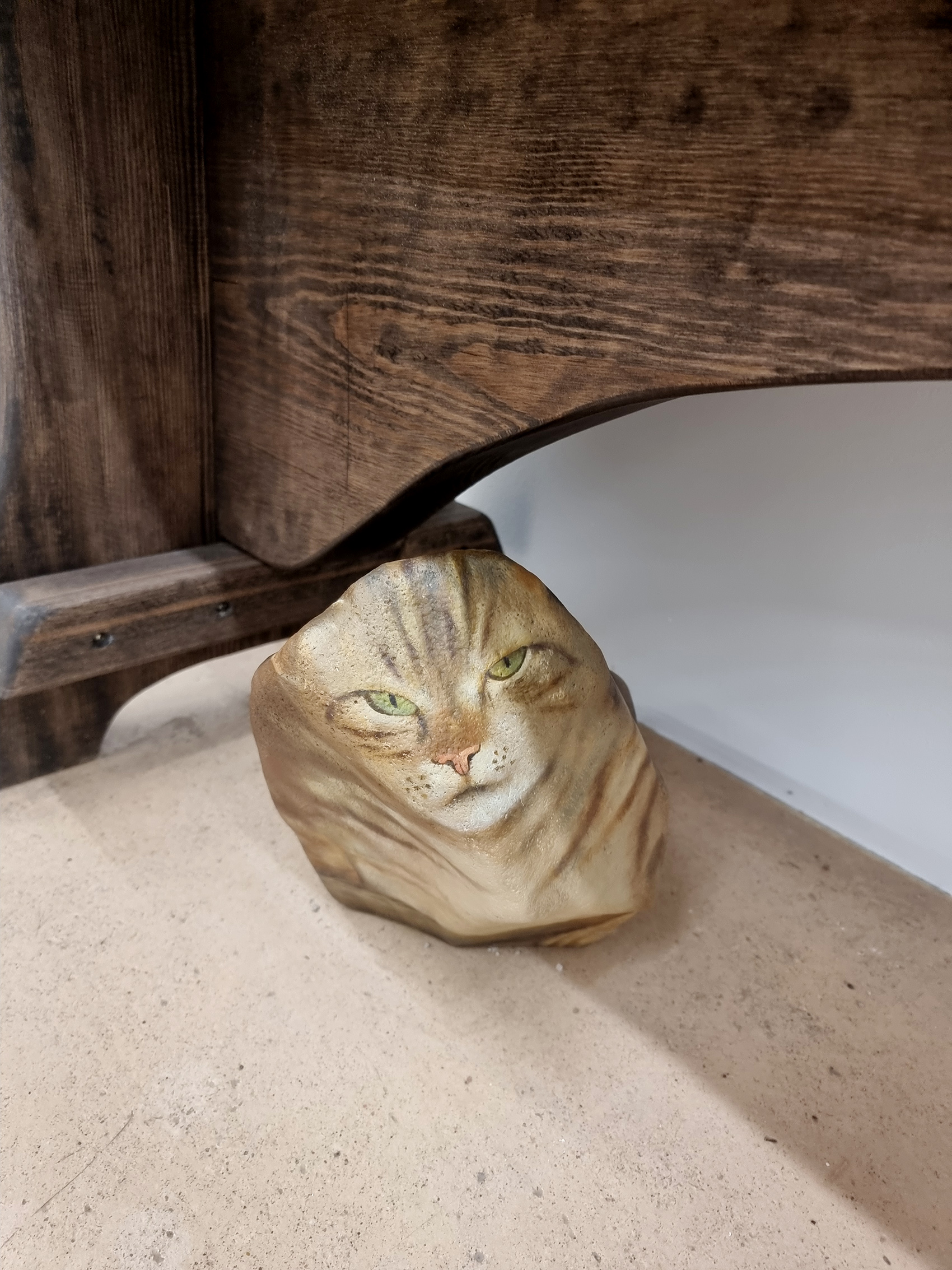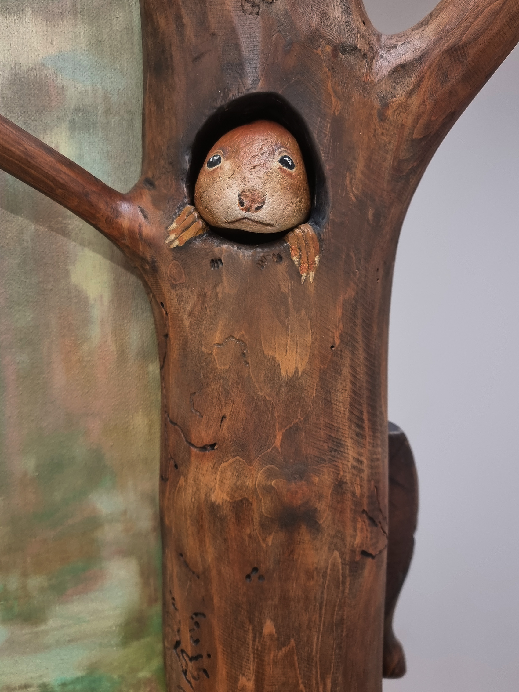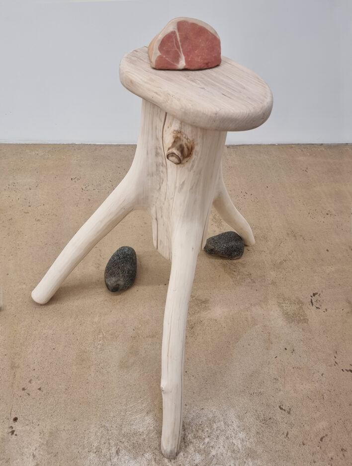 Ceļojums telpā turpinās, aizvien atklājot ko jaunu, kā virkne mazu pārsteigumu, kas katrs mazliet kairina skatītāja ierastos priekšstatus. Acij paveras kaut kas tik ļoti pazīstams bet arī ikdienā atstāts novārtā. Kā piemēram zaļo varžu gleznojums, kas nevainīgi stāv pie sienas, it kā nepasakot neko. Domas turpina lidot, atmiņas par bērnībā pieredzēto dabas apbrīnu ataust man prātā. Nevar nepieminēt apgleznoto akmeņu mākslu, kas asociējas ar mazdārziņu rotājumiem, bet organiski iepinas izstādes koncepcijā. Kaķis, kas nobijies vēro tevi no soliņa apakšas, izrādās akmens olis, kas smīn veiksmīgi apmānijis tevi gluži kā reālistisks putnu biedēklis lidojošos zemes iemītniekus. “Atrastie dārgumi” organiski ieaužas izstādes kopējā loģikā un jau atkal kāds cits dzīvnieka tēla atveidojums ir ne mazāk veiksmīgs dzīvās radības māns, kas atgādina par to, cik viegli ir sajaukt dzīvo ar nedzīvo, ja skatāmies pavirši.